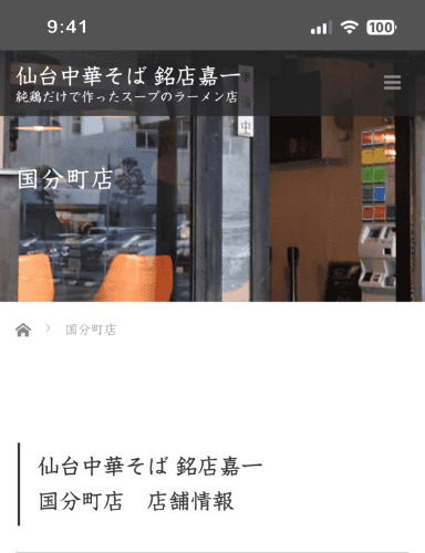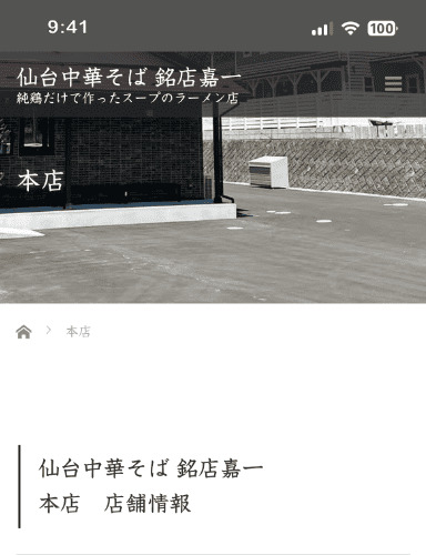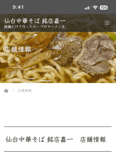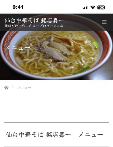 仙台中華そば 銘店嘉一様のホームページの作成ポイントは、以下となります。