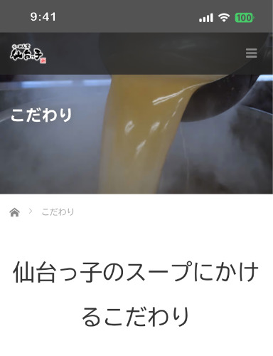 らーめん堂 仙台っ子様 公式ホームページの「こだわり」ページとなります。