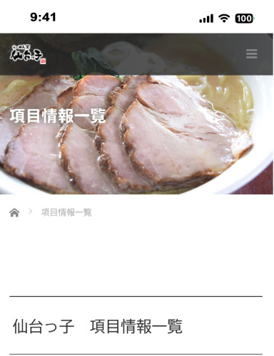 らーめん堂 仙台っ子様 公式ホームページの「項目情報一覧」ページとなります。