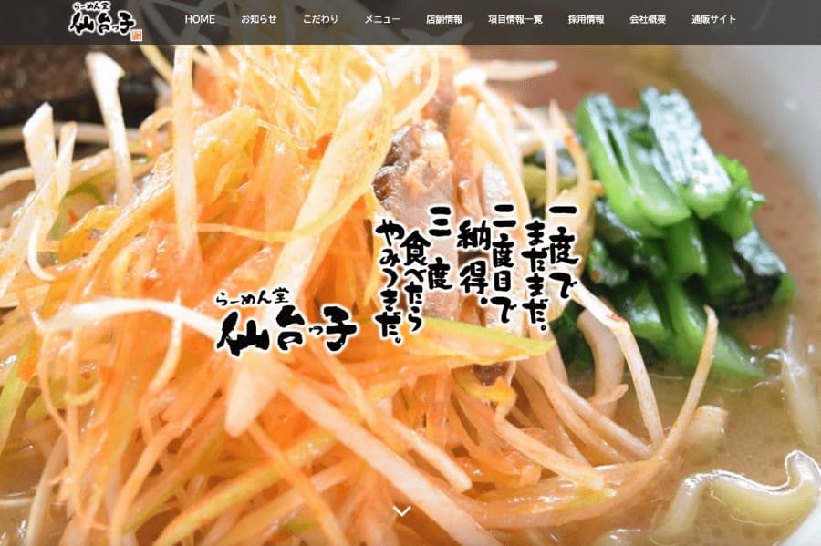 らーめん堂 仙台っ子様の公式ホームページについて解説いたします。